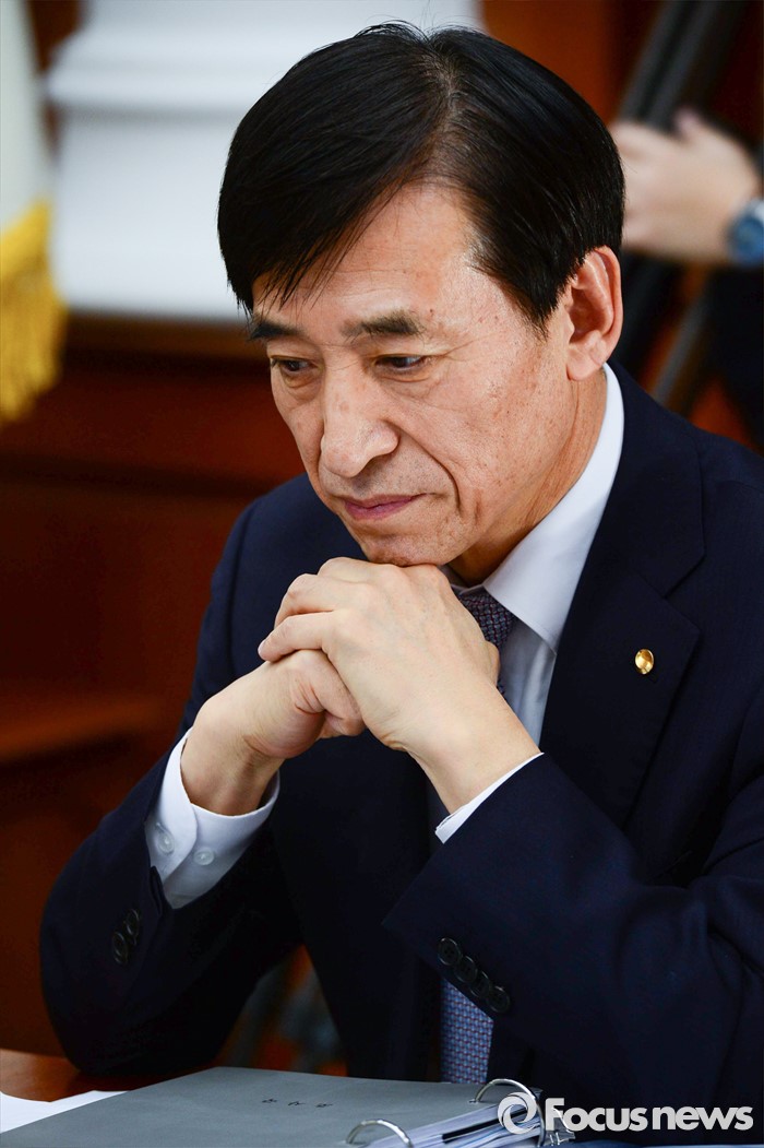 (서울=포커스뉴스) 이주열 한국은행 총재가 14일 서울 중구 한국은행 본관에서 열린 금융통화위원회의에서 생각에 잠겨 있다.