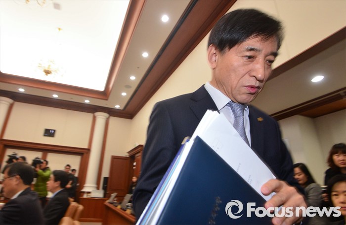 (서울=포커스뉴스) 이주열 한국은행 총재가 14일 서울 중구 한국은행 본관에서 열린 금융통화위원회의에 참석하기 위해 회의장으로 입장하고 있다.