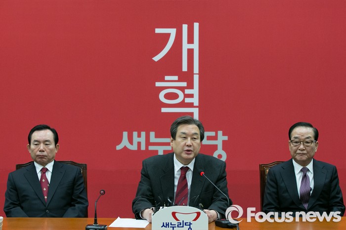(서울=포커스뉴스) 김무성(가운데) 새누리당 대표가 14일 오전 서울 여의도 국회에서 열린 최고위원회의에 참석해 모두발언하고 있다.
