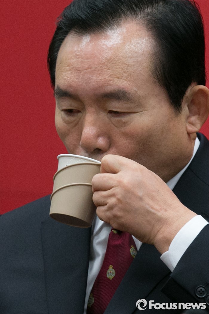 (서울=포커스뉴스) 이인제 새누리당 최고위원이 14일 오전 서울 여의도 국회에서 열린 최고위원회의에 참석해 물을 마시고 있다.