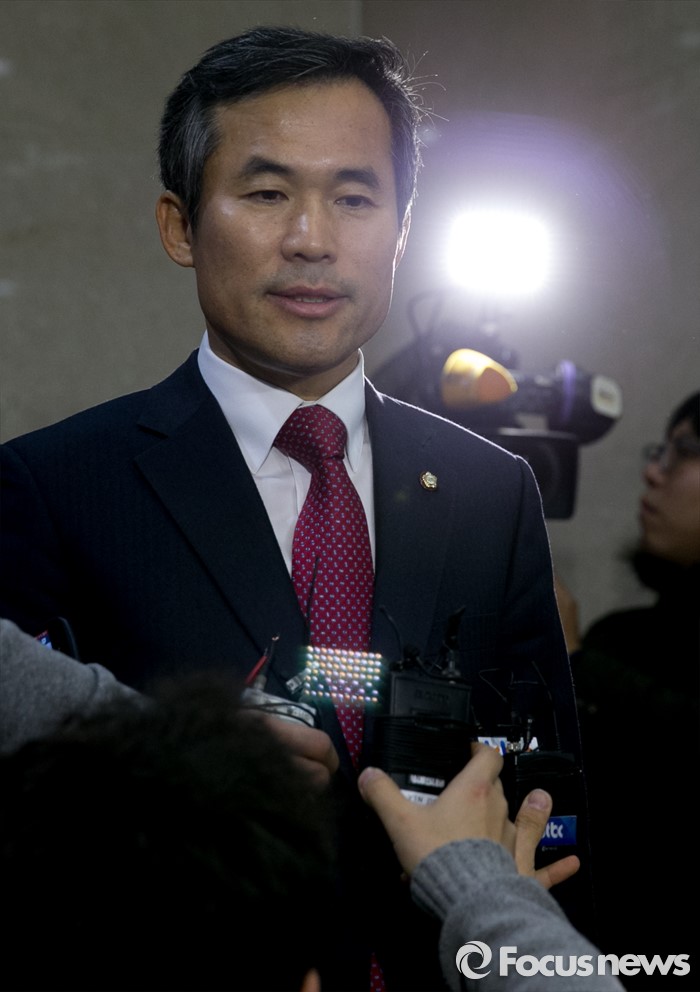 (서울=포커스뉴스) 김승남 더불어민주당 의원이 14일 오전 서울 여의도 국회 정론관에서 탈당 기자회견을 마친 뒤 취재진 질문에 답하고 있다.