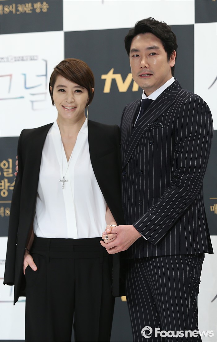 (서울=포커스뉴스) 14일 오후 서울 영등포구 타임스퀘어 아모리스홀에서 열린 tvN 10주년 특별기획 '시그널' 제작발표회에 참석한 배우 김혜수(왼쪽)와 조진웅이 포토타임을 갖고 있다.