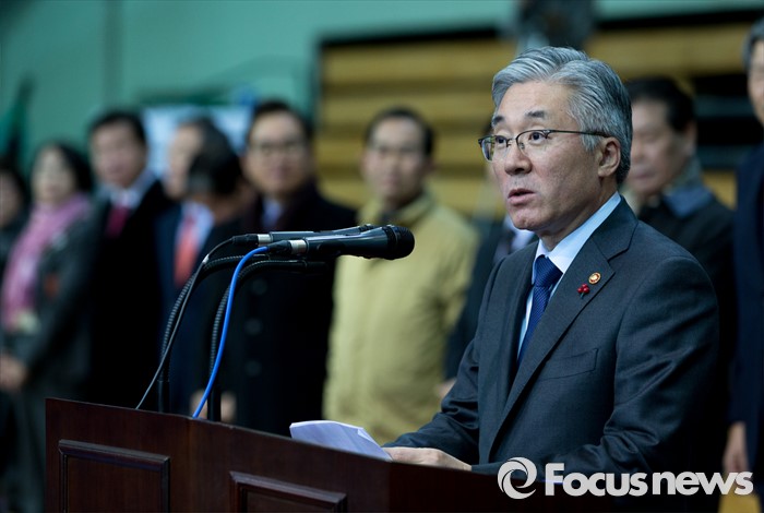 (서울=포커스뉴스) 14일 오후 서울 노원구 태릉선수촌 오륜관에서 열린 2016년 국가대표 훈련개시식 및 체육인 신년인사회에서 김종덕 문화체육관광부 장관이 격려사를 하고 있다.