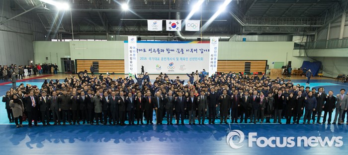 (서울=포커스뉴스) 14일 오후 서울 노원구 태릉선수촌 오륜관에서 열린 2016년 국가대표 훈련개시식 및 체육인 신년인사회에서