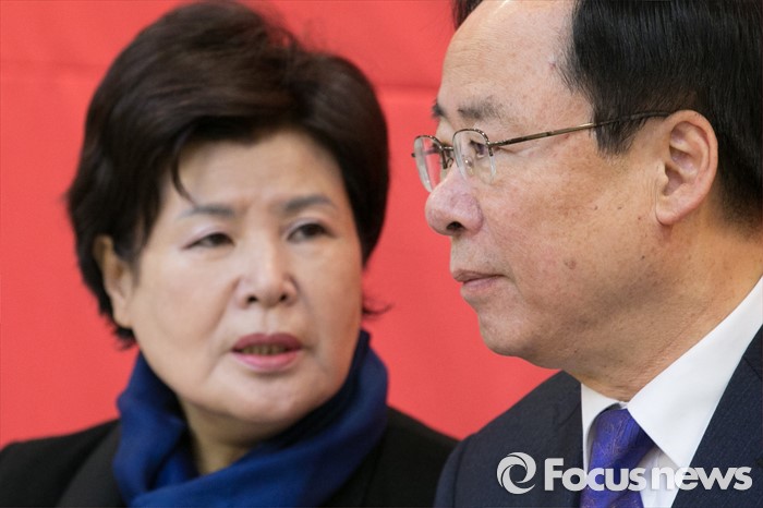 (서울=포커스뉴스) 이주영(오른쪽) 새누리당 저출산대책특위 위원장과 박윤옥 간사가 15일 오전 서울 여의도 국회 귀빈식당에서 열린 사교육비 절감방안 논의를 위한 당정협의에 참석해 대화하고 있다.