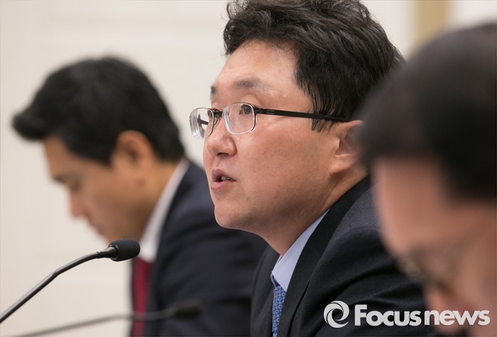 (서울=포커스뉴스) 15일 오전 서울 여의도 국회 귀빈식당에서 열린 카드수수료 관련 간담회에서 정무위원회 여당 간사인 김용태 새누리당 정책위부의장이 모두발언을 하고 있다. 이날 간담회는 최근 카드사들이 중·대형 가맹점들에 수수료 인상을 통보한 것과 관련 업계 의견을 청취하기 위해 진행됐으며 한국외식업중앙회, 대한약사회, 서울남서부슈퍼마켓협동조합, 소상공인연합회 등이 참석했다.