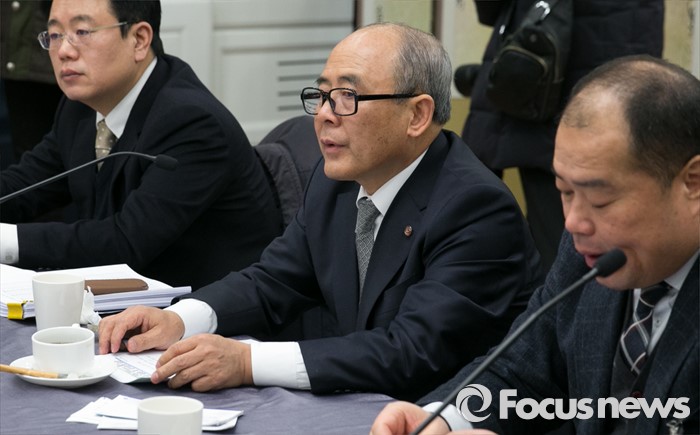 (서울=포커스뉴스) 15일 오전 서울 여의도 국회 귀빈식당에서 열린 카드수수료 관련 간담회에 참석한 민상헌(가운데) 한국외식업중앙회장 등 관계자들이 정무위원회 여당 간사인 김용태 새누리당 정책위부의장의 모두발언을 듣고 있다. 이날 간담회는 최근 카드사들이 중·대형 가맹점들에 수수료 인상을 통보한 것과 관련 업계 의견을 청취하기 위해 진행됐으며 한국외식업중앙회, 대한약사회, 서울남서부슈퍼마켓협동조합, 소상공인연합회 등이 참석했다.