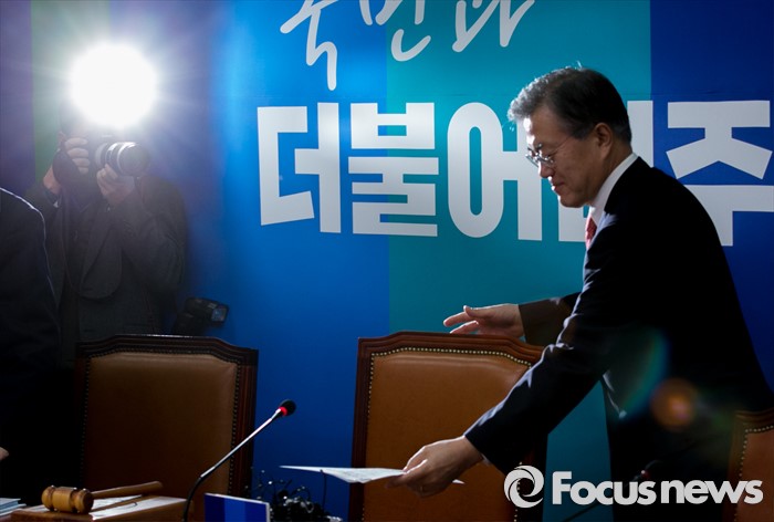 (서울=포커스뉴스) 문재인 더불어민주당 대표가 15일 오전 서울 여의도 국회에서 열린 최고위원회의에 참석하고 있다.