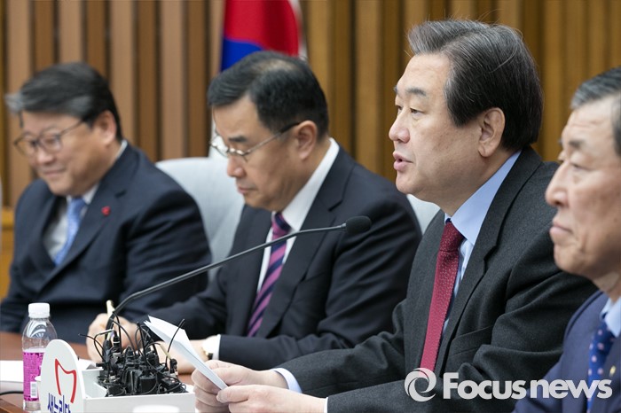 (서울=포커스뉴스) 김무성(오른쪽 두번째) 새누리당 대표가 15일 오전 서울 여의도 국회에서 열린 주요당직자회의에 참석해 모두발언하고 있다.