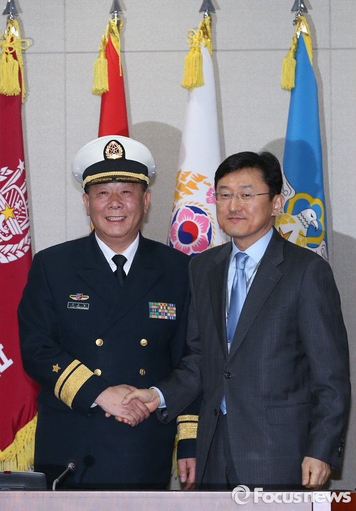 (서울=포커스뉴스) 한국군과 중국군 당국이 북한의 4차 핵실험 도발에 대한 대응 방안을 논의하기 위해 15일 오전 서울 국방부에서 '제15차 한·중 국방정책실무회의'를 개최, 윤순구 국방부 국제정책관과 관요페이 중국 국방부 외사판공실 주임이 악수를 하고 있다.