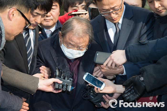 (서울=포커스뉴스) 조세포탈과 횡령·배임 등의 혐의로 기소된 조석래 효성그룹 회장이 15일 오후 서울 서초구 서울중앙지법에서 열린 1심 선고 공판을 끝내고 법정을 나서고 있다.