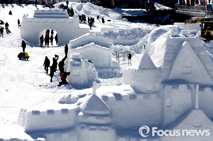 (평창=포커스뉴스) 15일 오후 강원도 평창군 횡계리 일대에서 열린 대관령 눈꽃축제를 찾은 관람객들이 눈으로 만든 조각들을 보며 즐거운 시간을 보내고 있다.