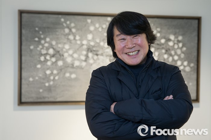(서울=포커스뉴스) 15일 오후 서울 용산구 갤러리 조은에서 김덕용, 전병현 작가의 '갤러리 조은 개관전'이 열리고 있는 가운데 전병현 작가가 인터뷰 중 웃고 있다.