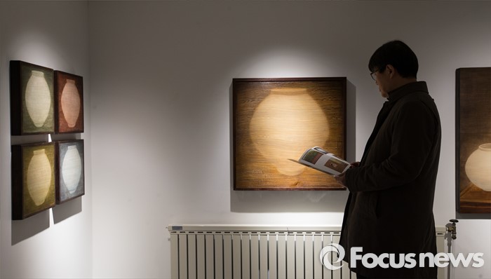 (서울=포커스뉴스) 15일 오후 서울 용산구 갤러리 조은에서 김덕용, 전병현 작가의 '갤러리 조은 개관전'이 열리고 있는 가운데 관람객이 김덕용 작가의 작품을 감상하고 있다.