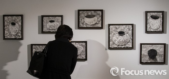 (서울=포커스뉴스) 15일 오후 서울 용산구 갤러리 조은에서 김덕용, 전병현 작가의 '갤러리 조은 개관전'이 열리고 있는 가운데 관람객이 전병현 작가의 작품을 감상하고 있다.