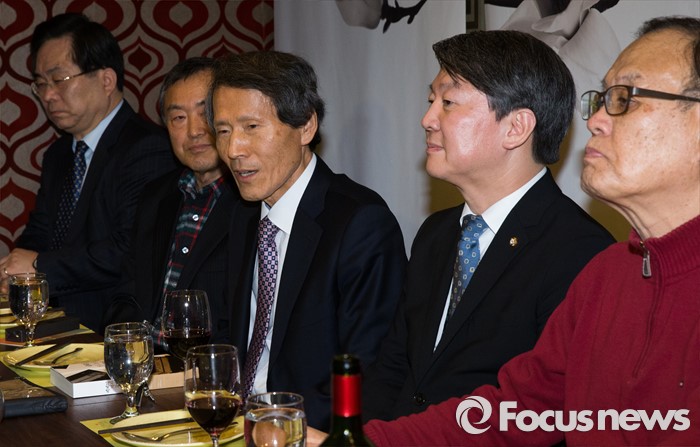 (서울=포커스뉴스) 한상진(가운데) 국민의당 창당준비위원장이 15일 오후 서울 관악구 한 태국 식당에서 진행된 故 김대중 전 대통령 재임 당시 자문정책기획위원회 모임에 참석해 모두발언 하고 있다.