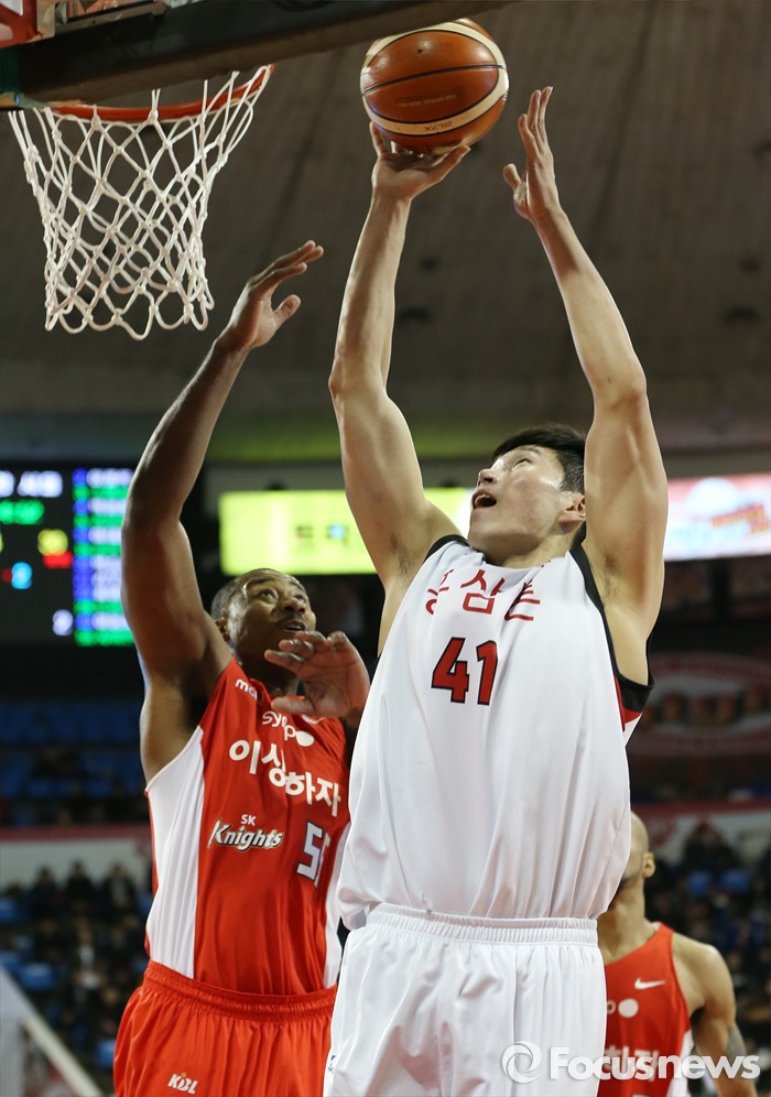 (서울=포커스뉴스) 15일 서울 잠실학생체육관에서 열린 2015-2016 프로농구 SK-KGC 경기에서 KGC 오세근이 SK 사이먼의 마크를 받으며 점프슛을 하고 있다.