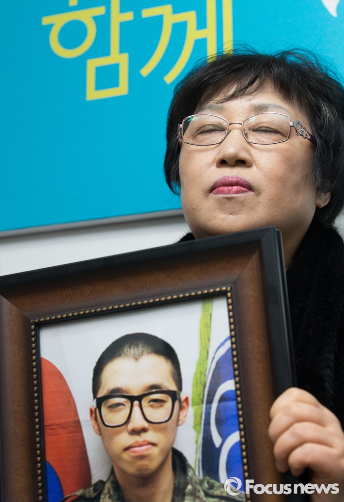 (서울=포커스뉴스) 16일 오후 서울 서대문구 군피해치유센터 '함께' 개소식에서 故 윤승주 일병 어머니 안미자 씨가 생각에 잠겨 있다.