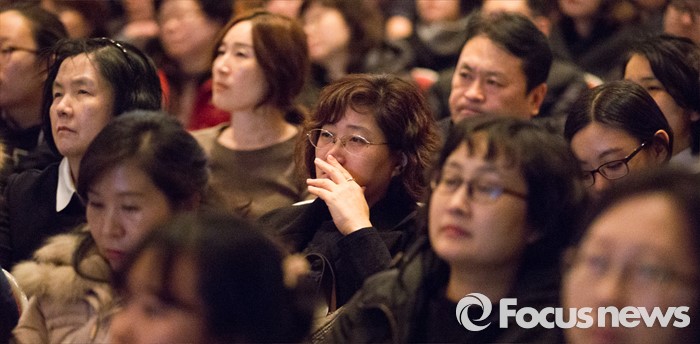 (서울=포커스뉴스) 16일 오후 서울 강남구 숙명여고 대강당에서 열린 '대성학원 재수성공전략 설명회'에서 학생과 학부모들이 성공전략을 경청하고 있다.