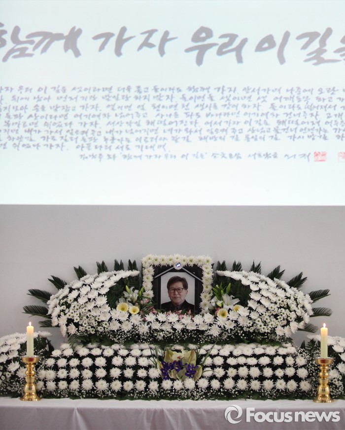 (서울=포커스뉴스) 16일 오후 서울 구로구 성공회대학교 성미가엘성당에 마련된 故 신영복 성공회대 석좌교수의 빈소에 영정사진이 놓여 있다. <성공회대학교 제공>