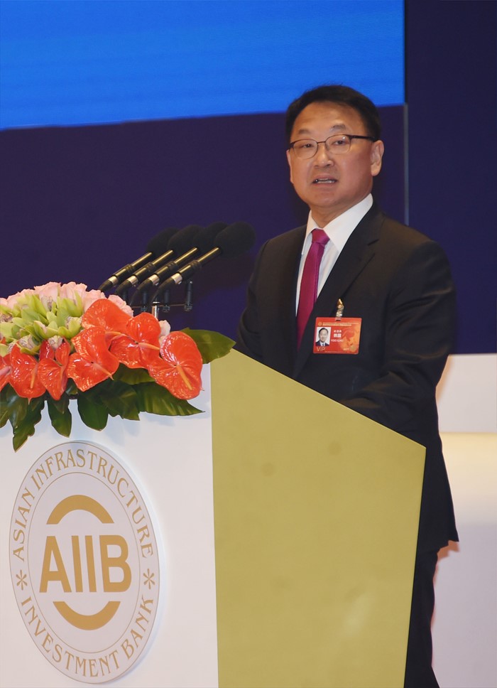 (북경=포커스뉴스) 아시아 인프라 투자은행(AIIB) 창립총회 참석차 중국 북경을 방문중인 유일호 부총리 겸 기획재정부이 16일(현지시간) 조어대에서 열린 개소식에서 축사를 하고 있다. <사진제공=기획재정부>