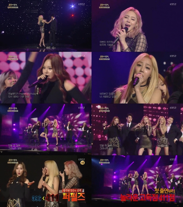 한편 퍼펄즈는 지난 11월 디지털 싱글 앨범 ‘나쁜 여자’를 발매하고 활발한 활동 중이다.걸그룹 퍼펄즈가 16일 오후 방송된 KBS2TV ‘불후의 명곡-전설을 노래하다’ 오승근-조항조 편에 출연해 1승을 거뒀다.<사진출처=KBS2 ‘불후의 명곡’ 캡처>