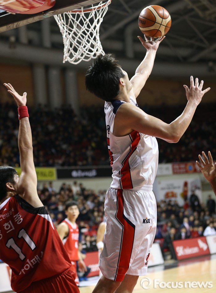 (안양=포커스뉴스) 17일 안양실내체육관에서 열린 2015-2016 프로농구 KGC-모비스 경기에서 모비스 배수용이 KGC 양희종의 수비를 따돌리고 리버스 레이업슛을 쏘고 있다.