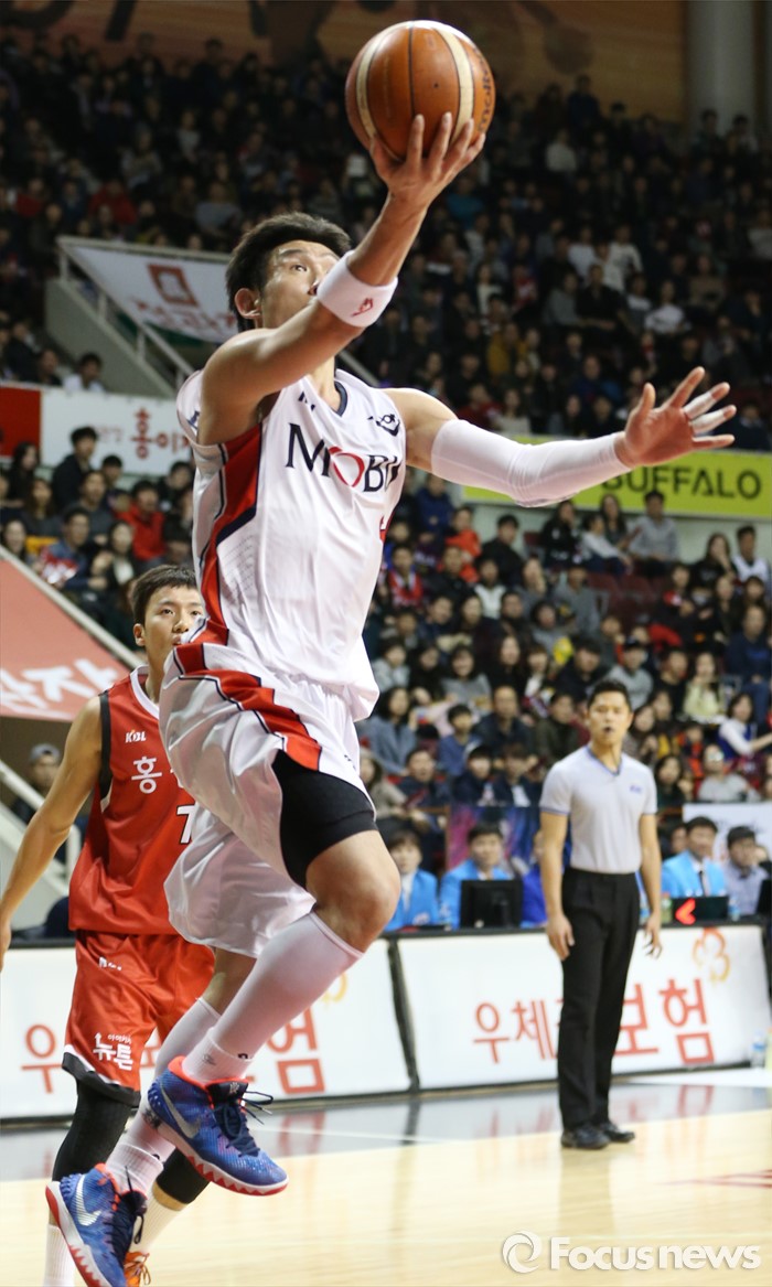 (안양=포커스뉴스) 17일 안양실내체육관에서 열린 2015-2016 프로농구 KGC-모비스 경기에서 모비스 양동근이 KGC 수비를 따돌리고 레이업슛을 쏘고 있다.