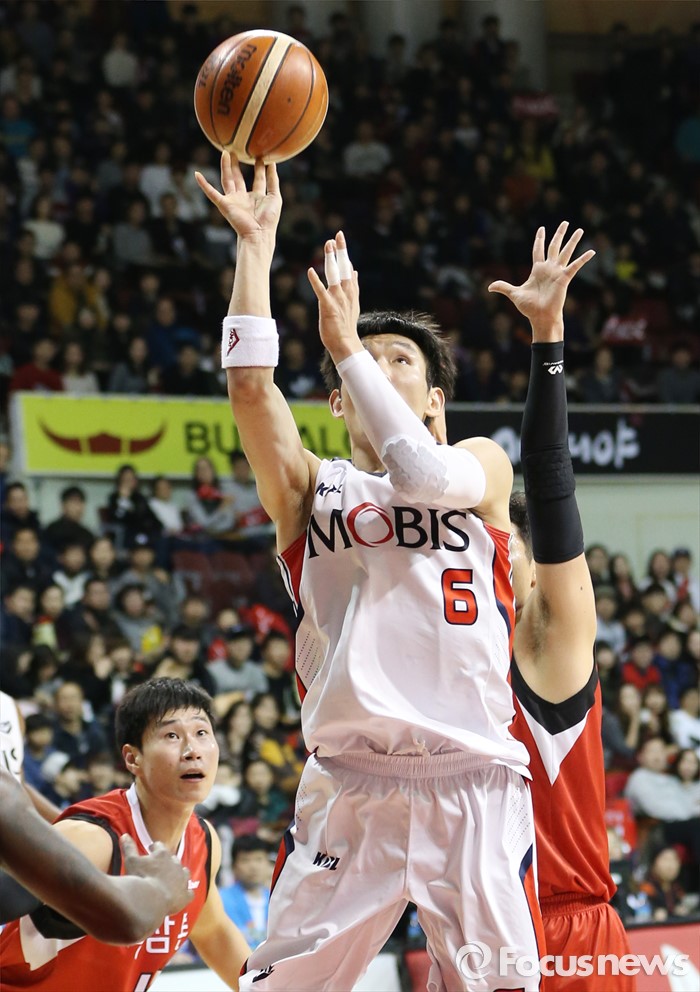 (안양=포커스뉴스) 17일 안양실내체육관에서 열린 2015-2016 프로농구 KGC-모비스 경기에서 모비스 양동근이 KGC 수비를 따돌리고 점프슛을 쏘고 있다.