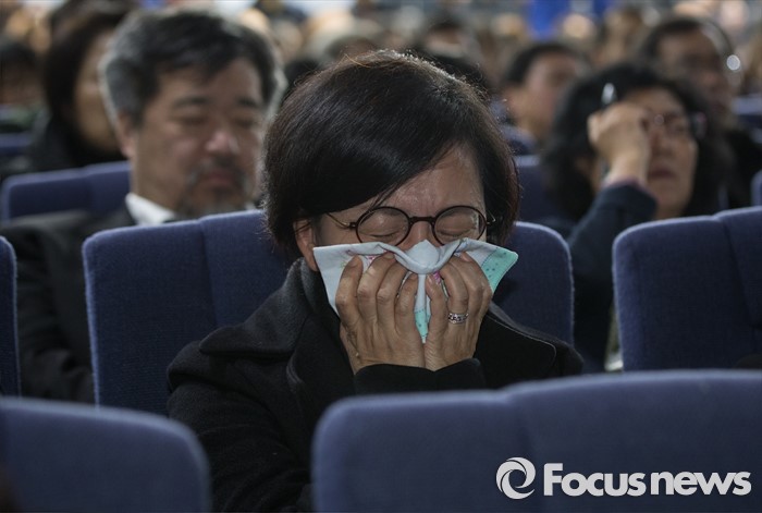 | △ 故 신영복 교수 추모의 밤, 눈물 흘리는 추모객 |