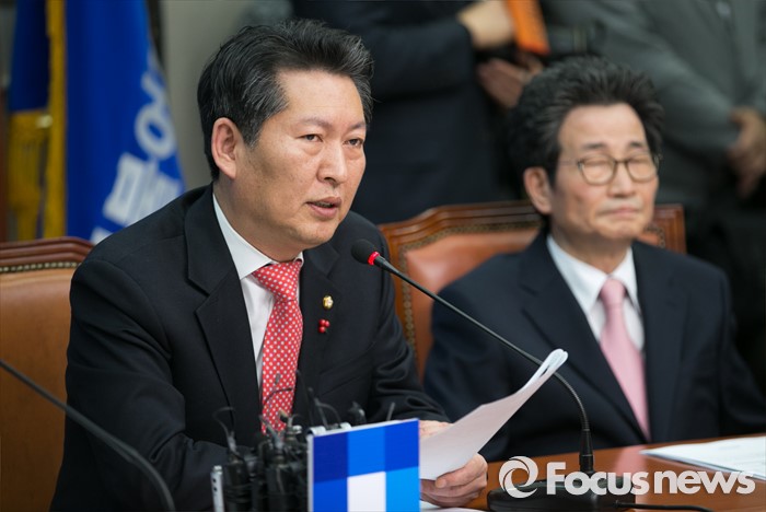(서울=포커스뉴스) 정청래 더불어민주당 최고위원이 18일 오전 서울 여의도 국회에서 열린 최고위원회의에 참석해 한상진 국민의당 창당준비위원장의 이승만 전 대통령 국부 발언과 관련 발언하고 있다.