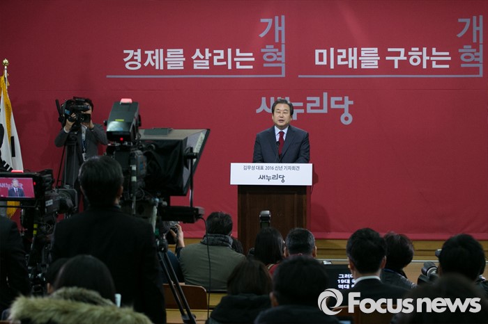 (서울=포커스뉴스) 김무성 새누리당 대표가 18일 오전 서울 여의도 국회 의원회관에서 신년 기자회견을 하고 있다.