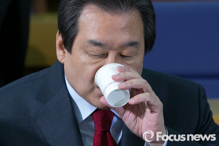 (서울=포커스뉴스) 김무성 새누리당 대표가 18일 오전 서울 여의도 국회 의원회관에서 신년 기자회견을 앞두고 물을 마시고 있다.