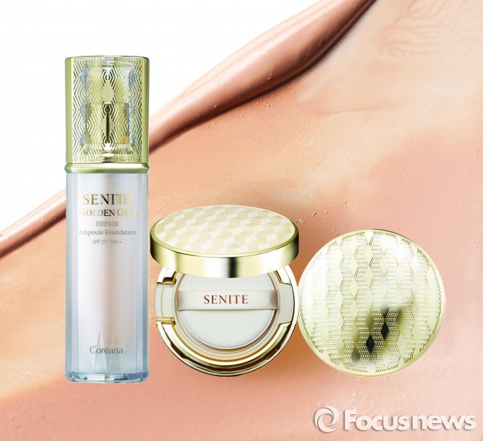 세니떼 골든셀 리페어 앰플 라인은 △자외선과 근적외선을 동시에 차단하는 쿠션 파운데이션 △아르간 오일이 들어있는 리퀴드 파운데이션 △진주 파우더를 함유한 팩트로 구성됐다.