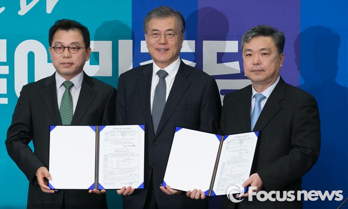 또한, 다가오는 20대 총선 출마 여부를 묻는 말에 오 전 이사장은 "그건 저희가 마음으로 가진 문제이긴 하지만 당의 결정에 따르도록 하겠다"고만 답했다.문재인(가운데) 더불어민주당 대표가 18일 오전 서울 여의도 국회에서 오성규(왼쪽) 전 서울시설관리공단 이사장과 김민영 전 참여연대 사무처장 인재영입 기자회견에 참석해 입당원서를 들고 포즈를 취하고 있다. 2016.01.18 박동욱 기자