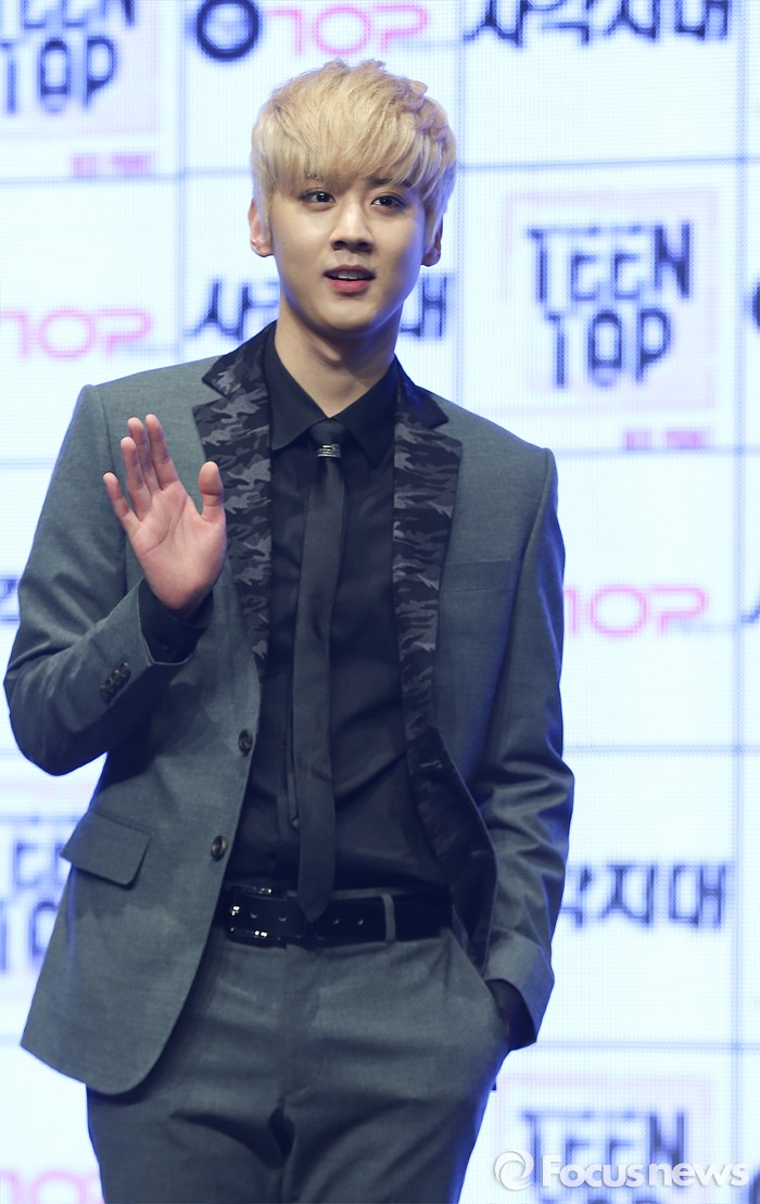 (서울=포커스뉴스) 18일 오전 서울 강남구 일지아트홀에서 열린 아이돌 그룹 틴탑의 미니앨범 'RED POINT' 쇼케이스에 참석한 멤버 천지가 포토타임을 갖고 있다.