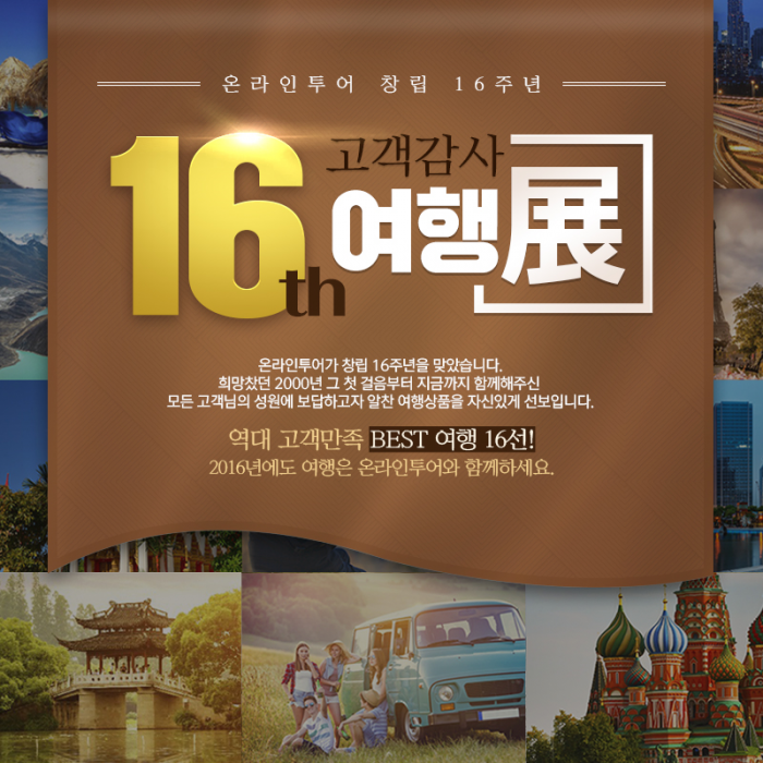 (서울=포커스뉴스) 여행사 온라인투어가 창립 16주년을 맞아 '고객감사 여행전(展)'을 진행한다.