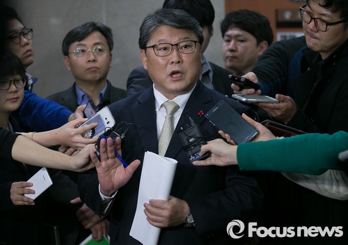 (서울=포커스뉴스) 18일 오후 서울 여의도 국회 정론관에서 운영위원회 여당 간사인 조원진 새누리당 원내수석부대표가 여당 단독으로 운영위원회 전체회의를 소집해 '심사기일 지정' 요건(직권상정요건)을 완화하는 내용의 국회법 개정안을 처리한 것과 관련 취재진에게 당위성을 설명하고 있다.