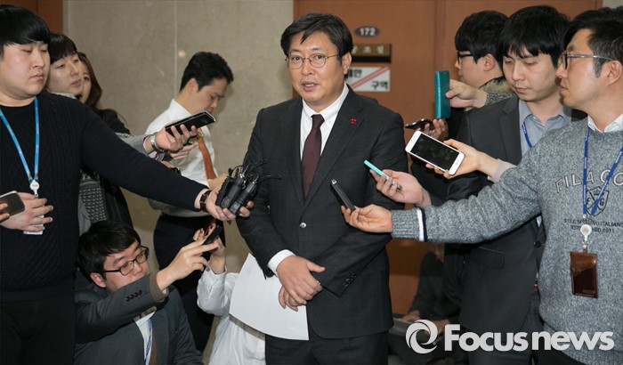 | △ 취재진 질문 답하는 이춘석 |