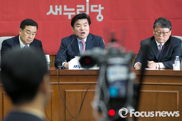(서울=포커스뉴스) 원유철(가운데) 새누리당 원내대표가 19일 오전 서울 여의도 국회에서 열린 원내대책회의에 참석해 모두발언하고 있다.