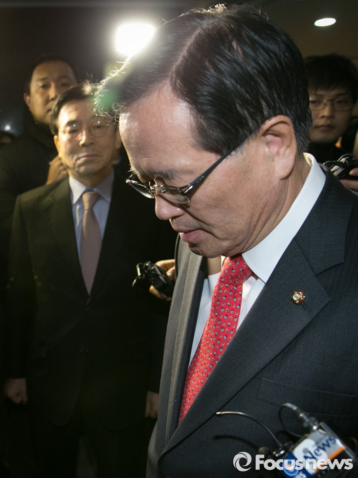 (서울=포커스뉴스) 새누리당이 단독으로 직권상정 완화 국회법 개정 시도에 착수한 19일 오전 정의화 국회의장이 서울 여의도 국회로 출근하며 취재진 질문을 받고 있다.