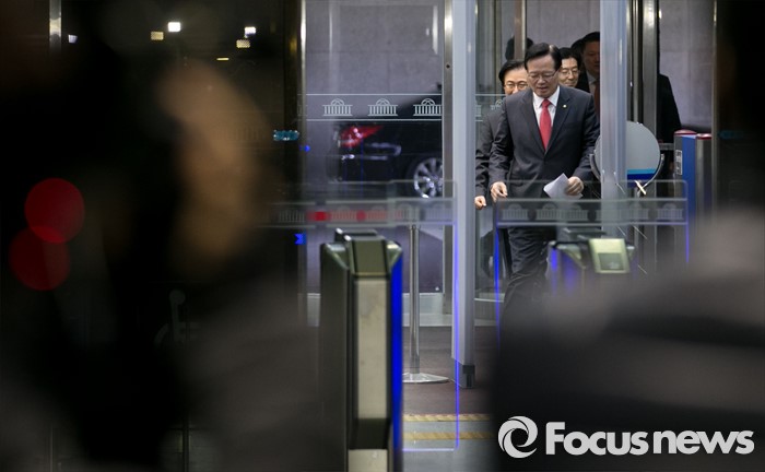 (서울=포커스뉴스) 새누리당이 단독으로 직권상정 완화 국회법 개정 시도에 착수한 19일 오전 정의화 국회의장이 서울 여의도 국회로 출근하고 있다.