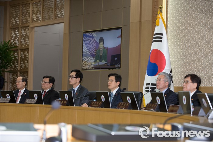 (세종=포커스뉴스) 황교안 국무총리가 19일 오전 세종시 정부세종청사 국무회의장에서 열린 청와대-세종청사 영상 국무회의에 참석해 박근혜 대통령의 모두발언을 경청하고 있다.
