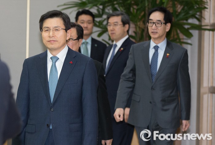 (세종=포커스뉴스) 황교안 국무총리가 19일 오전 세종시 정부세종청사 국무회의장에서 열린 청와대-세종청사 영상 국무회의에 참석하고 있다.