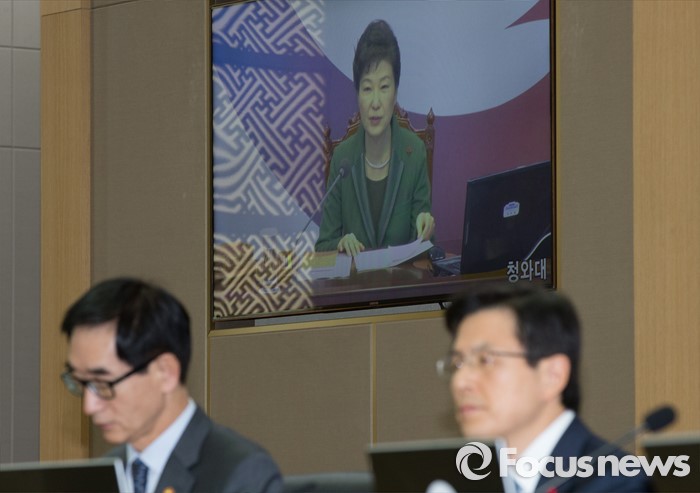 (세종=포커스뉴스) 황교안 국무총리가 19일 오전 세종시 정부세종청사 국무회의장에서 열린 청와대-세종청사 영상 국무회의에 참석해 박근혜 대통령의 모두발언을 경청하고 있다.