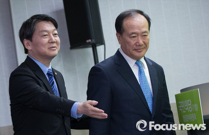(서울=포커스뉴스) 국민의당(가칭) 창당준비위원회가 19일 오전 서울 마포구 당사 브리핑룸에서 국민의당 새 참여 인사로 김봉수 전 키움증권 부회장을 영입한다고 밝혔다. 안철수 인재영입위원장이 김봉수 전 회장을 발언대로 안내하고 있다.