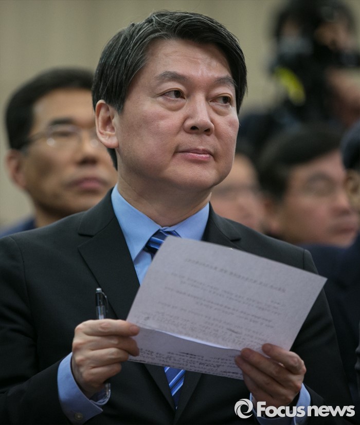 | △ 금융노조 정기전국대의원대회, 축사 준비하는 안철수 |