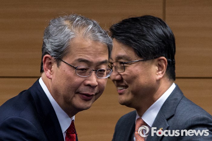 (서울=포커스뉴스) 임종룡 금융위원회 위원장과 진웅섭 금융감독원장이 19일 오후 서울 종로구 금융감독원 연수원에서 열린 '금융위원회-금융감독원 간부 합동연찬회'에 자리하기 위해 연찬회장으로 들어서고 있다.