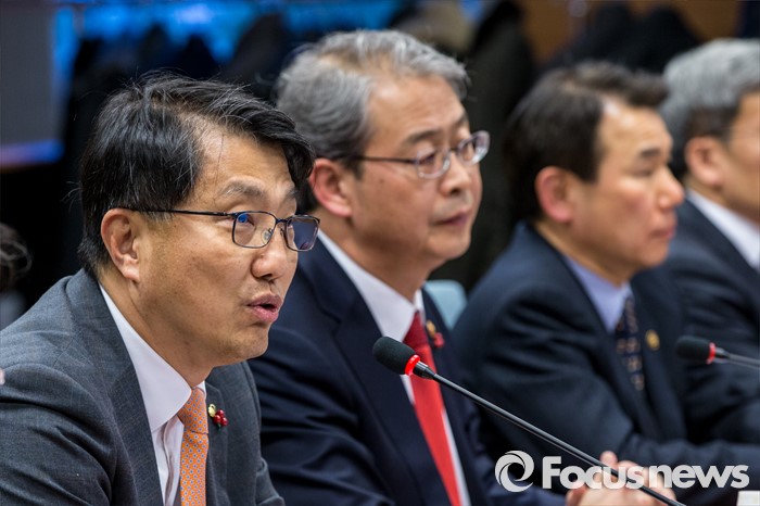 (서울=포커스뉴스) 진웅섭 금융감독원장이 19일 오후 서울 종로구 금융감독원 연수원에서 열린 '금융위원회-금융감독원 간부 합동연찬회'에 자리해 모두발언 하고 있다.