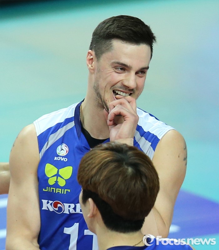 (서울=포커스뉴스) 19일 장충체육관에서 열린 '2015-2016NH농협 V-리그' 남자부 우리카드-대한항공 경기에서 공격 범실을 한 대한항공 모로즈가 쑥스러운 표정을 하고 있다.